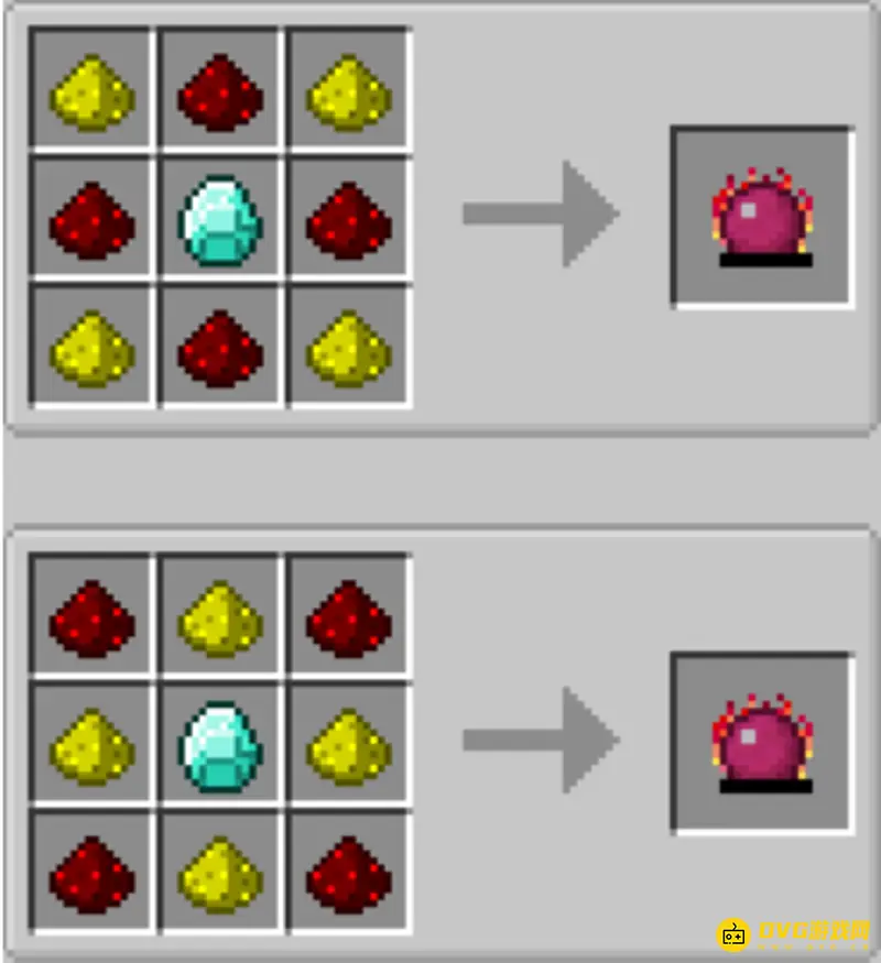 3、用4个“红石粉”,4个“萤石粉”,一块“钻石”制作“贤者之石”。如下图所示: