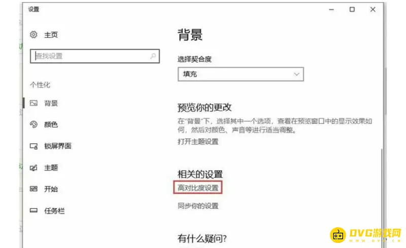 2.点到背景页面,下拉,点击“相关的设置”里面的“高对比度设置”