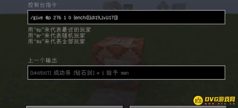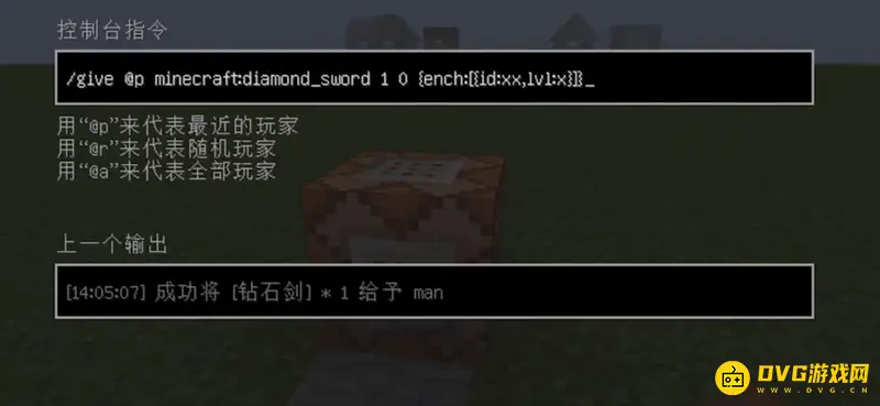 2、然后输入/give @p minecraft:diamond_sword 1 0 {ench:[{id:xx,lvl:x}]}。