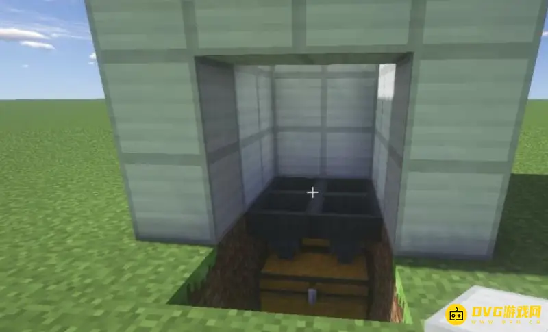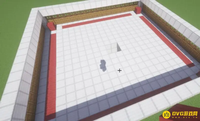 5、第一层建好后,再建造第二层平台,按图中放上门,在红色羊毛上面放水