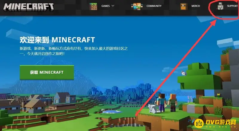 1,首先我们进入我的世界官网,点击右上角SUPPORT。