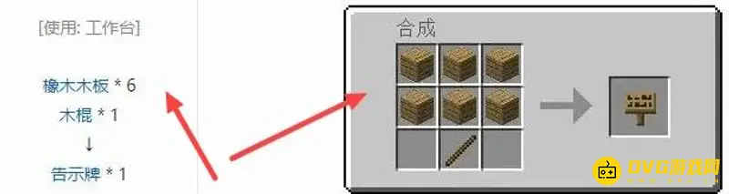 2,然后就会发现公告栏的制作方法了。使用六个木板和一个木棍就可以做一个公告栏。两块木板合成四根木棒出来,最后用六块木板和一根木棒摆成公告栏的形状合成,最后将公告栏放在地上,写上字就可以起到告示的作用了。