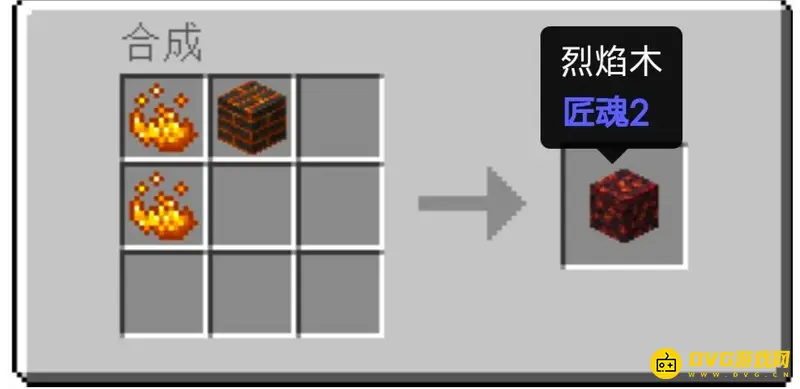 烈焰粉 * 2 熔岩木 * 1=烈焰木 。烈焰木是一种是一种基础的匠魂部件材料,来自于匠魂添加的烈焰木,可制成一般工具部件和弓臂。