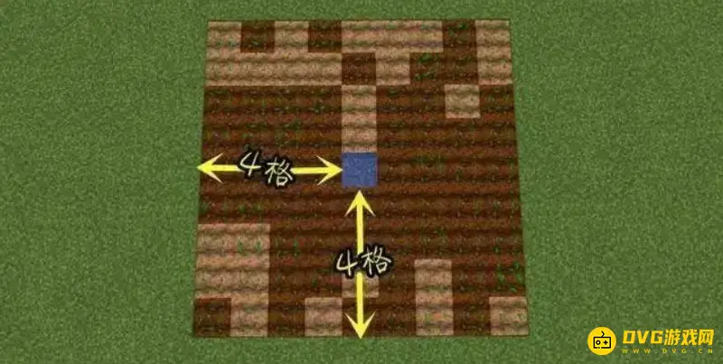 以一格水源为中心的9x9范围内农田都可以被灌溉,如果没有水耕作过的土地会变为普通泥土,种植过的作物也会掉落出来。水可以流淌8格。