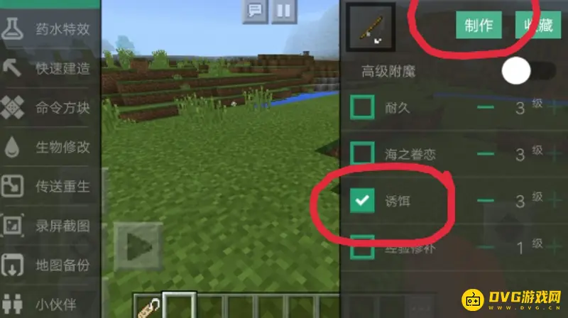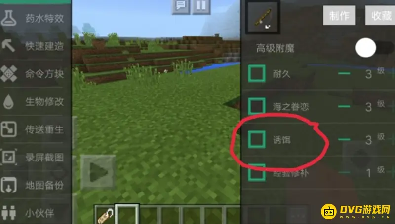 9.钓鱼竿选择以后,在附魔界面,选择饵钓效果。