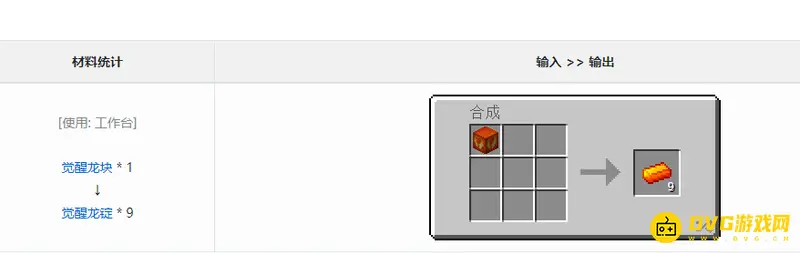 觉醒龙锭是由觉醒龙块分解得到,觉醒龙锭可以做觉醒级别的龙之护甲与工具,也是反应堆的燃料,但是一个是不可以开启反应的。