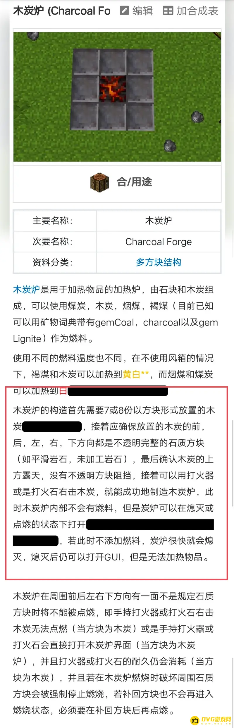 木炭炉的构造首先需要7或8份以方块形式放置的木炭,接着应确保放置的木炭的前,后,左,右,下方向都是不透明完整的石质方块(如平滑岩石,未加工岩石),最后确认木炭的上方露天,没有不透明方块阻挡,接着可以用打火器或是打火石右击木炭,就能成功地制造木炭炉。