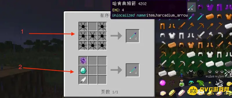 在我的世界这款游戏里面,哈肯典姆弓的箭合成方法有两种。第一:能够通过放入八个虚空精华来合成得到。第二:能够通过依次放入哈肯典姆、钻石和羽毛连线来合成。如下图所示。