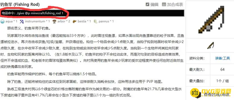 2,然后找到钓鱼竿的相关说明,就可以在物品下方看见指令了。