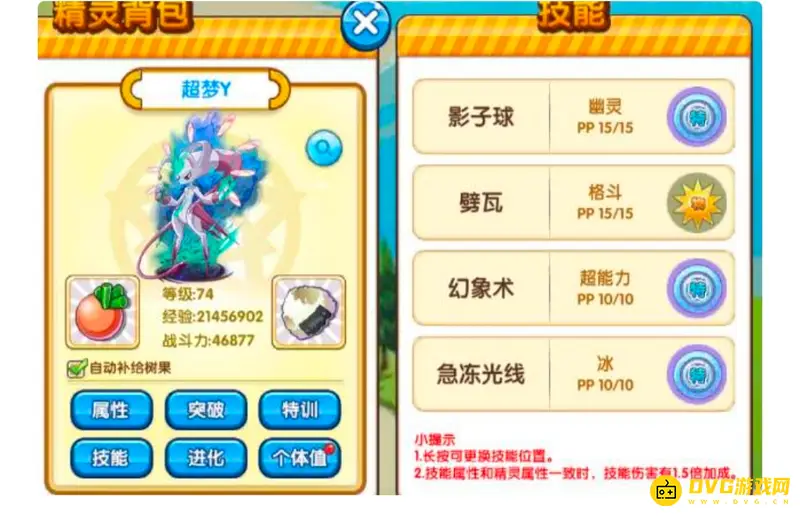 急冻光线。普通的超梦为超能力系神奇宝贝,在57级的时候可以学会“精神强念”来进行输出,而等级到达100满级时才可以学会“急冻光线”这样的专属强力技能。