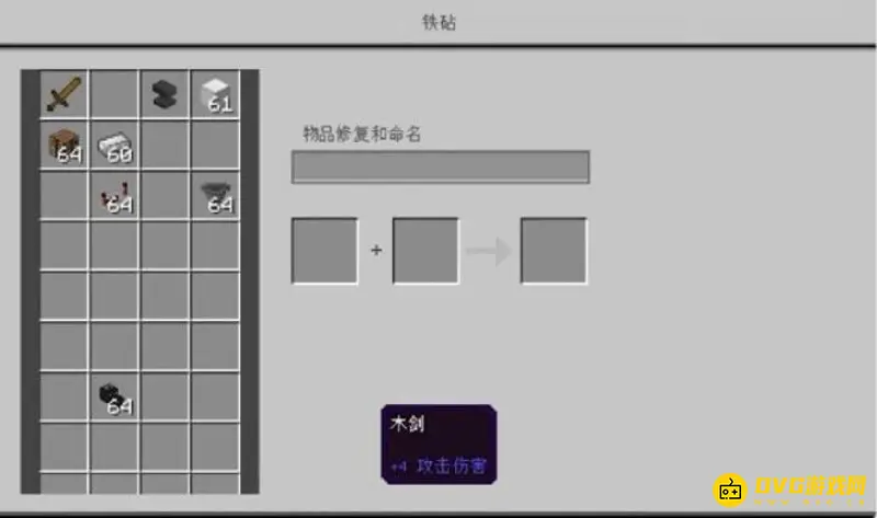 2、打开铁砧界面,可看到物品修复和命名,在修复工具时,可对工具进行命名,成为专属工具。