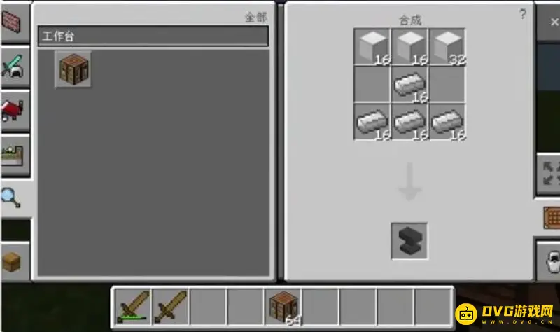 1、用3个铁块和4个铁锭制作一个铁砧。