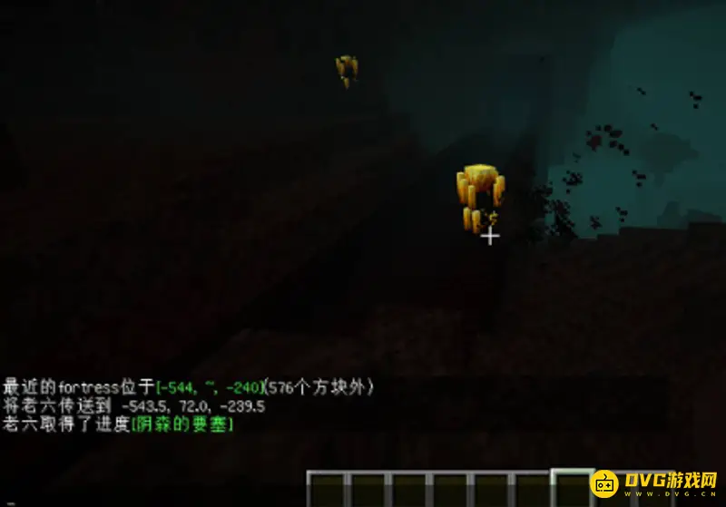 一、进入地狱,按“T”键打开控制台,输入/locate fortress,点击回车键。