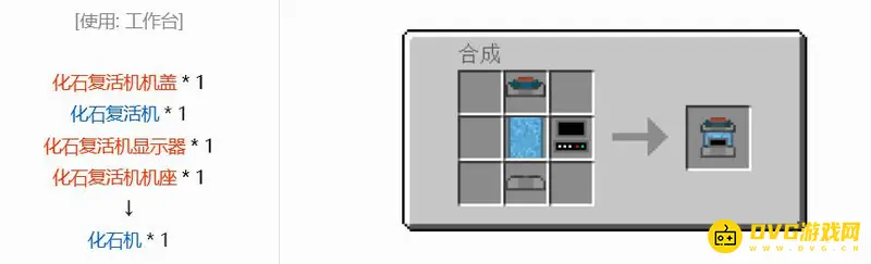 制作宝可梦化石机需要用到化石复活机,化石复活机的机盖,显示器以及机座,然后就可以合成化石机了,我们把清洗后的化石放在化石机里面,然后放一颗捕捉宝可梦的球在那里,等待复活完成之后我们就可以取回球了,里面就装着化石机复活好的宝可梦。