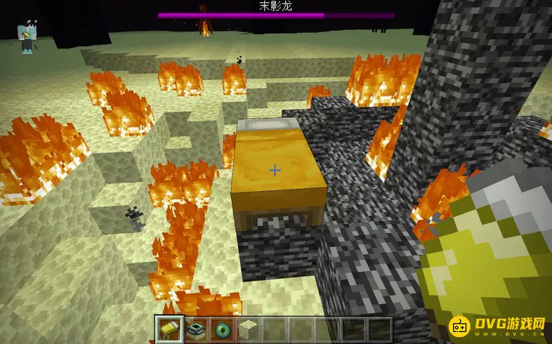 1,首先我们先要前往末影之地中间的基岩台处,在这里放一个床。