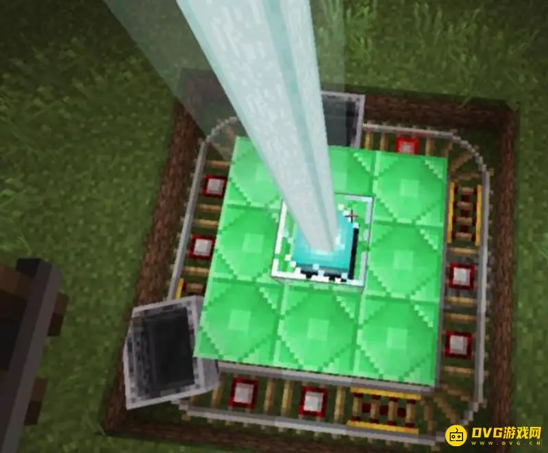 2、然后中间填上3x3木块,在下方地上填上动力铁轨,拐弯处普通铁轨。