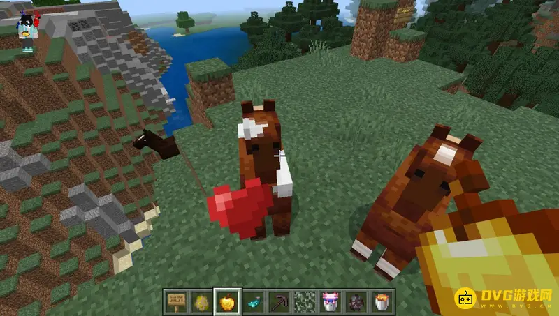 1,首先我们需要拿着金苹果给驯化的马喂食。