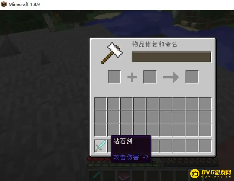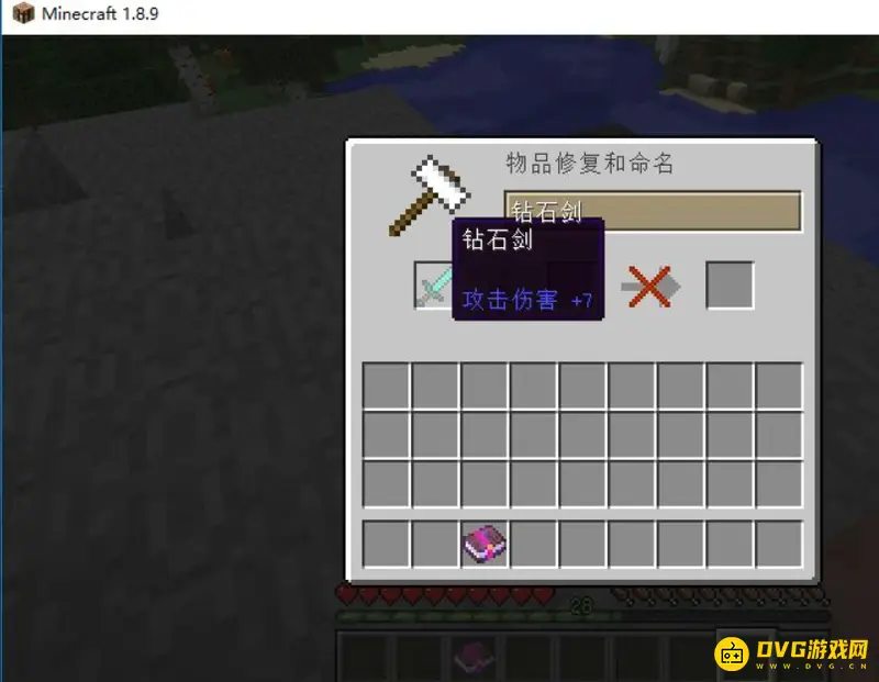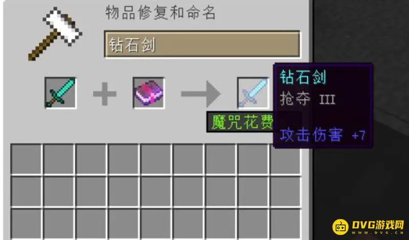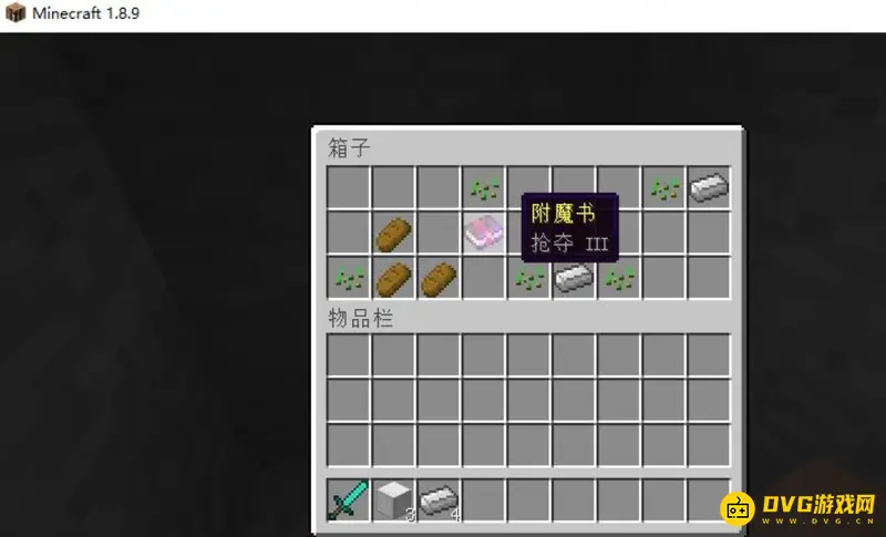 8、再将掠夺附魔书右键放到右边。如图,即可得到一把有掠夺BUFF的剑