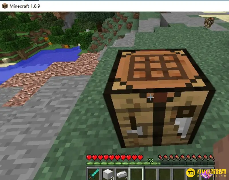 4、得到了附魔书和需要附魔的工具,就制作一个工具台,右键打开。