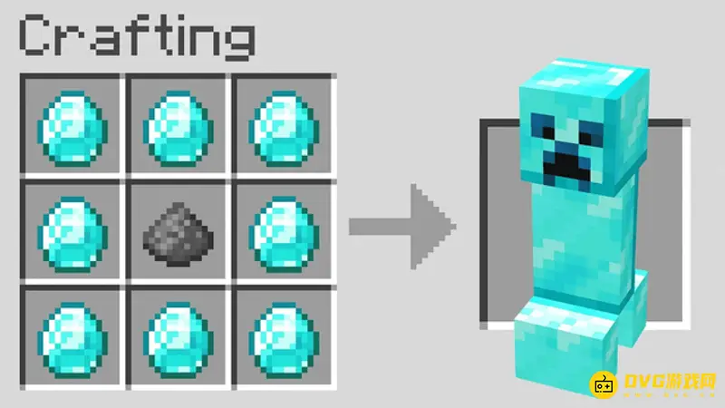 2、钻石苦力怕。苦力怕是一个自身会爆炸的生物,与火药之前有着深深的关系。所以在这张合成表当中,合成物当中使用了火药,外加上一层钻石,合成的钻石苦力怕。