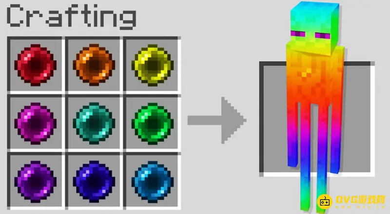 4、末影人。用各种各样彩色的末影珍珠来合成一个彩色的末影人。