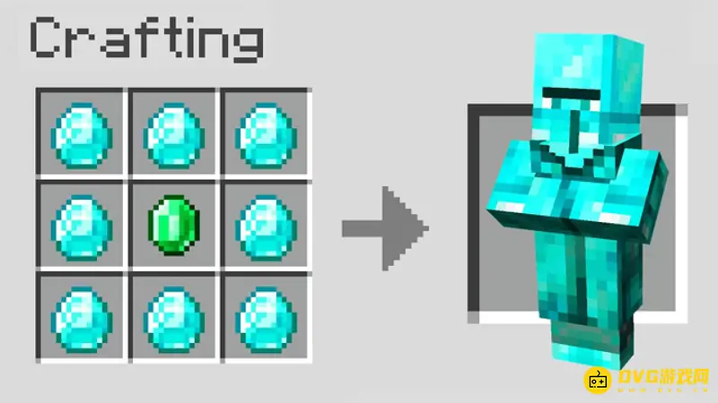 1、钻石村民。这个合成表则是用钻石和村民的标配绿宝石来合成一个钻石村民。