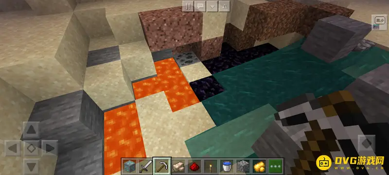9、找黑曜石了,获取方法很简单地下一般都有岩浆,用3个铁锭做成铁桶,去河边装水之后到入岩浆周围,水会漫延,把岩浆冷却就产生了黑曜石。
