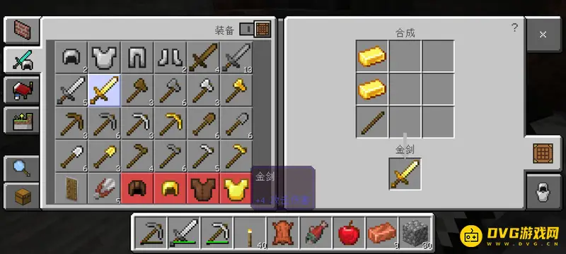 7、这样就进入了铁器时代,金矿可以用铁器挖取,放到熔炉炼制,相同可以做金护甲和工具。