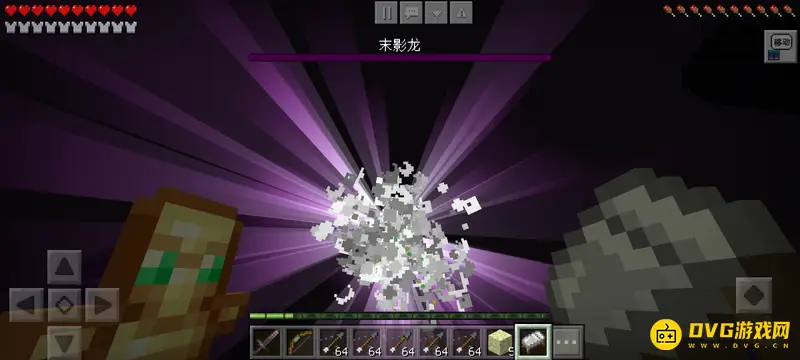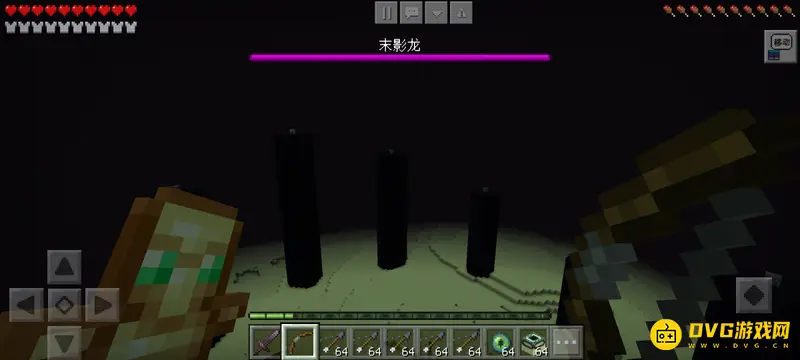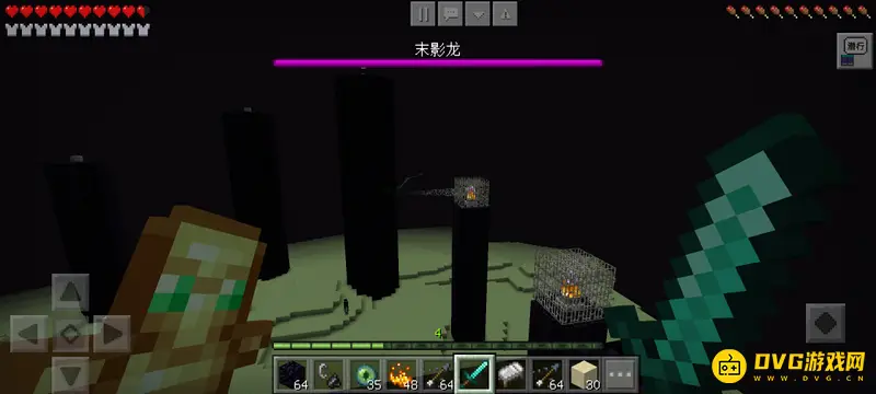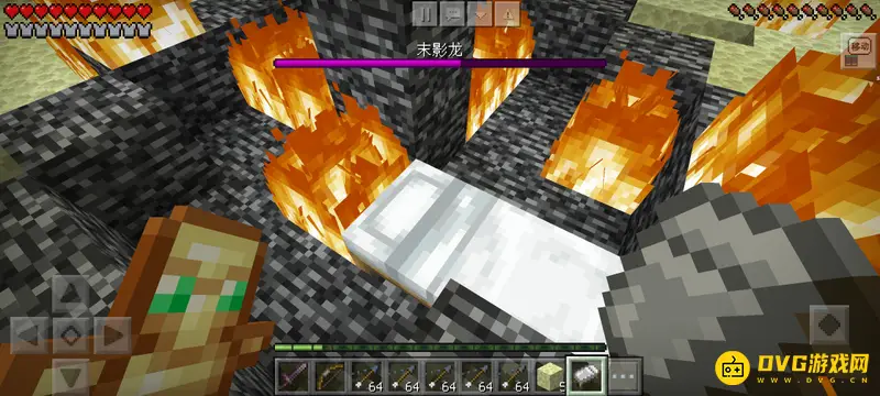 24、这里把他打掉,可以用方块搭上去,然后打它打掉,不然你边打末影龙末影龙边回血,非常不好打,可以搭上去一个高的塔然后剩下的用弓箭射爆就行了。