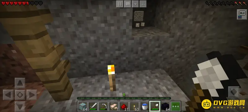 3、现在就是全套石头装备了,这代表进入了石器时代,按照这个节奏慢慢来,下面就应该是煤矿了吧,煤矿,表面是石头一样的夹杂着一点点黑色的纹路,用木镐挖取。挖下来就直接是煤矿了,可以做火把和当做燃料使用。 然后拿出熔炉,把煤矿放下面,肉放上面可以用来烧肉,有了火把之后就简单多了,那必须去探险矿洞。