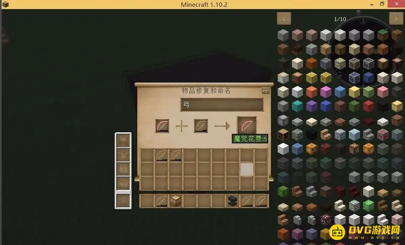 需要找出其他也损耗了耐久的弓,在背包或者工作台上进行合成。两个弓可以任意位置摆放。打开铁砧,把原本附了魔的弓放进第一格,新制作出来的弓放进第二格,然后最右栏就会出现修复好的弓,把它拿到背包里即可,这里需要消耗一定的经验值。