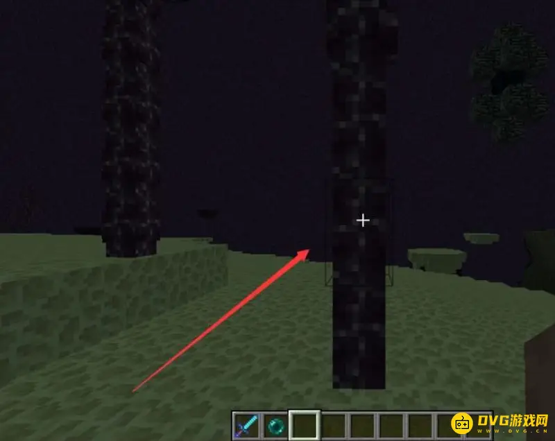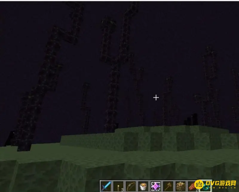 17、搭到顶端会发现有一个方块比紫颂植物其他部分更大,用精准采集稿子挖下来