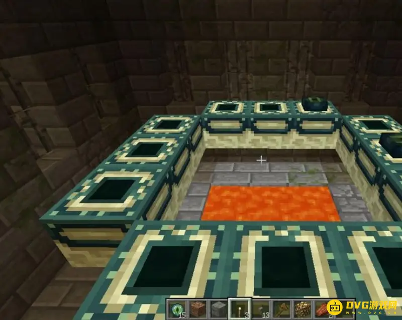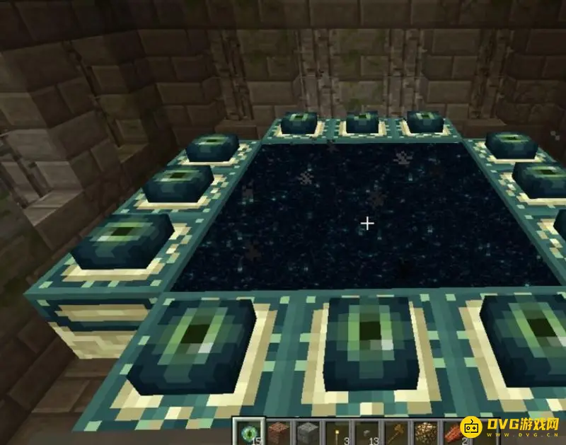 5、用末影之眼把末地传送门的凹槽镶嵌满,这样末地传送门就能开启了
