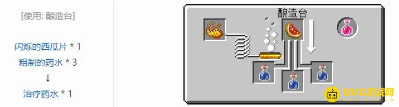 5,最后我们使用闪烁的西瓜片和三瓶粗制的药水,就可以酿造出治疗药水了。
