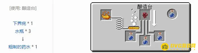 4,接着我们需要先酿造粗制的药水,用下界疣和三个水瓶即可酿造出粗制的药水。