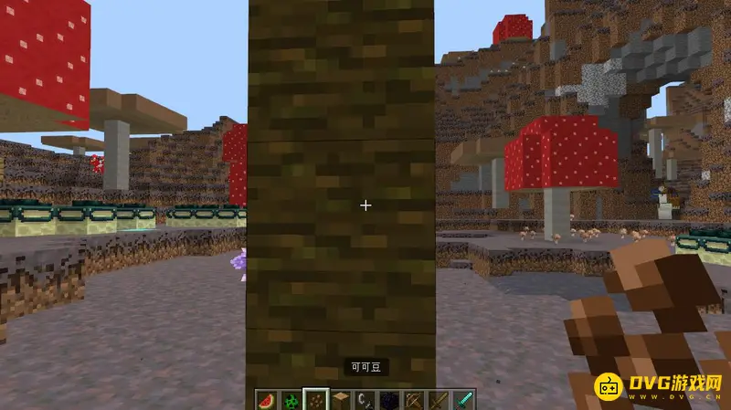 拿着咖啡豆右键点击丛林原木侧面就可以种上去了。