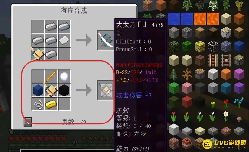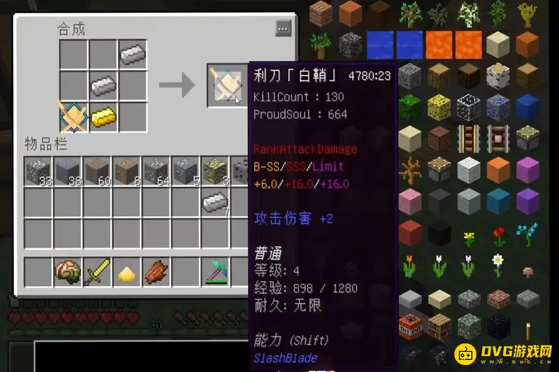 2、其中利刀白鞘合成需要:无铭刀木偶、金锭、铁锭*2。