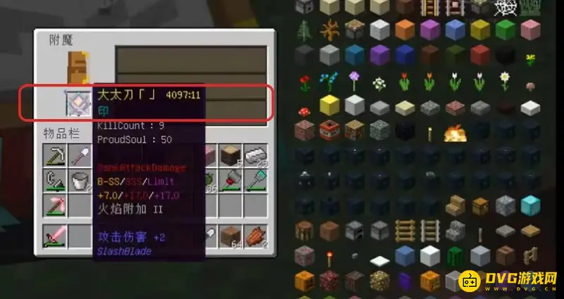 3、然后将到手的大太刀”封“拿过去附魔(可以附魔任意一种魔咒),等附魔完成后,就可以获得大太刀印了。