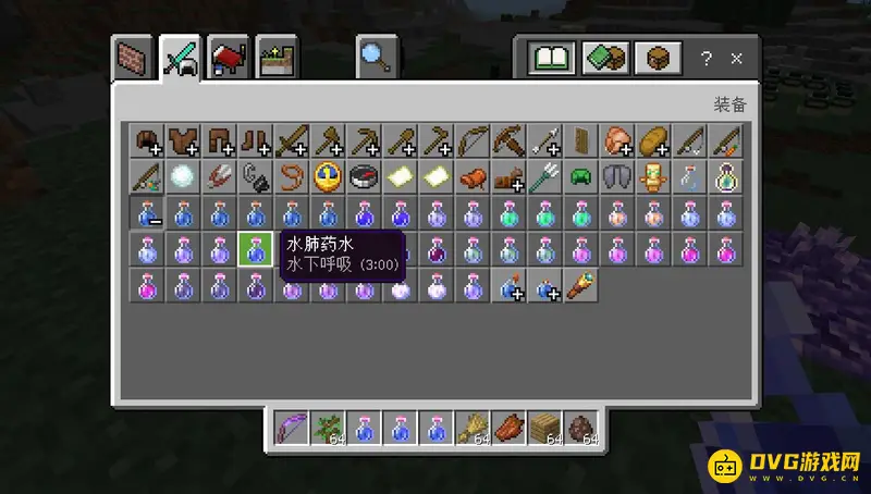 1,首先我们打开创造模式,拿取一些相同的药水。
