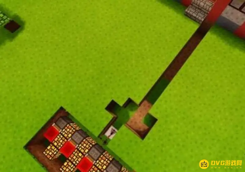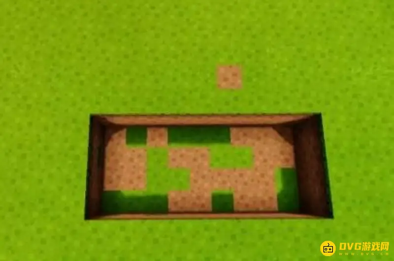 2、然后在这块地上挖出宽度为9个方块,长度为4个方块,深度为2个方块的凹槽。