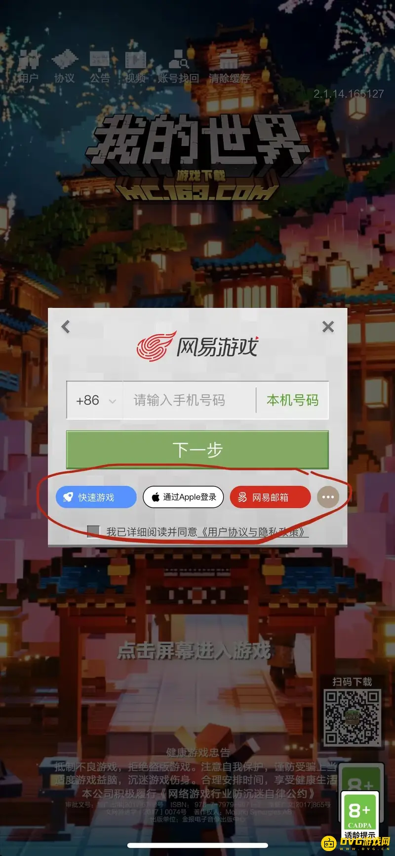 1.进入游戏,等到看到游戏登录界面时,此时不要点击屏幕进入游戏,直接点击左上角的用户按钮。