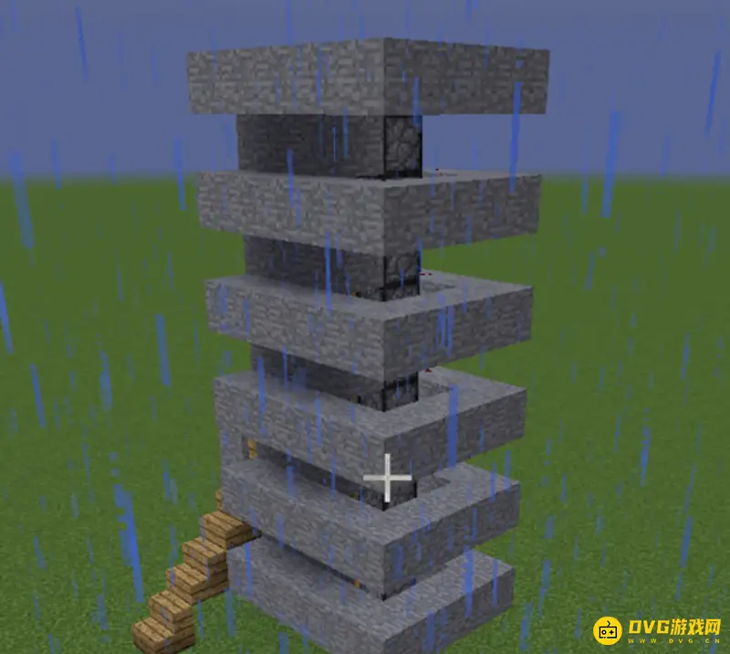 3.方块的上方放一个按钮,最底层的石头距离5格的地方放4个石头,石头中间位置放两个活塞,活塞上方放一个按钮,第二个活塞前方放一个红石块上方放一个玻璃,玻璃的一侧再放一个玻璃。右侧放一排向上的楼梯,保证玩家通过楼梯可以到玻璃上面。