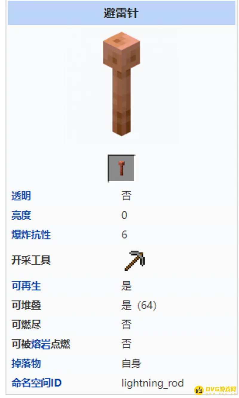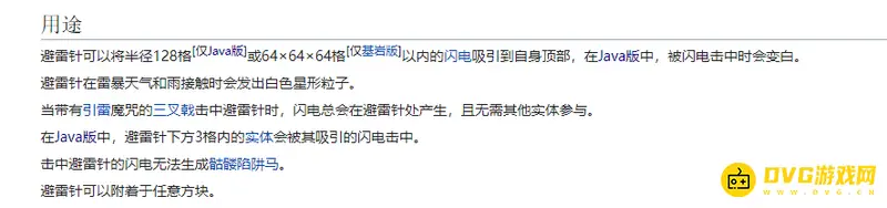 避雷针可以将半径128格或64×64×64格以内的闪电吸引到自身顶部,被闪电击中时会变白。避雷针吸引的闪电能够立刻去除避雷针下方未涂蜡的铜块(或其变种)的所有锈蚀,并减轻邻近的其他铜块(或其变种)的锈蚀程度。