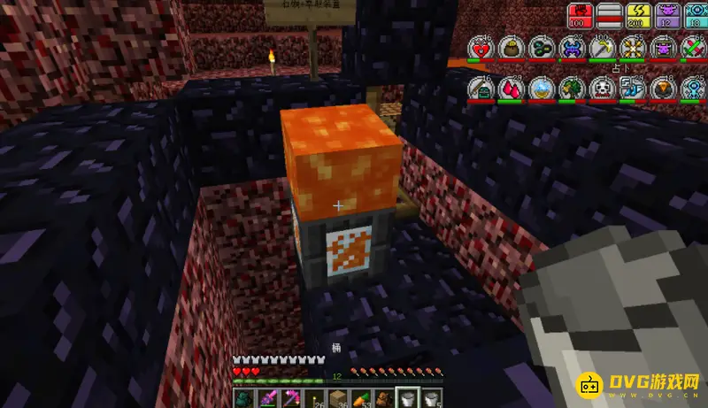 2.填满后用石碗或钻石碗右键萃取装置,这时上面的岩浆会消失,并且会在下面产生黑曜石,代表你成功了,你的精炼等级也会随之提升,第二次使用要挖掉黑曜石。