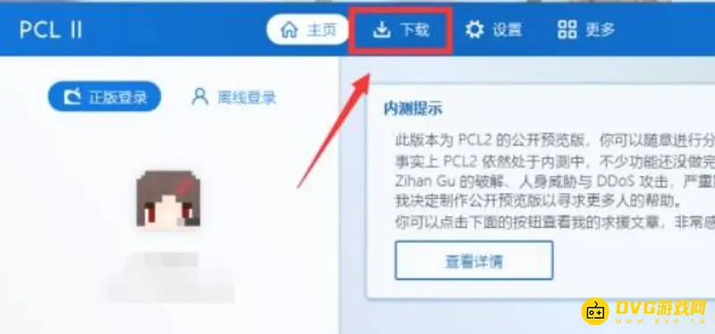 3.在启动器界面的上方,点击“下载”按钮,进入下载界面。