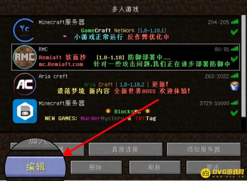 方法1: 启动游戏,然后选择多人游戏选项,在这个界面上,可以看到已经连接的服务器列表,点击左下角的编辑就可以看到每个服务器的ip地址了。