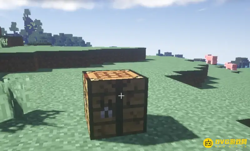 1、首先进入我的世界游戏,然后找到工作台并右键打开工作台界面。