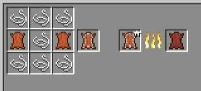 3、若想换成大背包,则需要用皮革和蜘蛛丝合成一种带线的皮革,再放在熔炉里面烧成暗色皮革,再用8个暗色的皮革合成大背包。