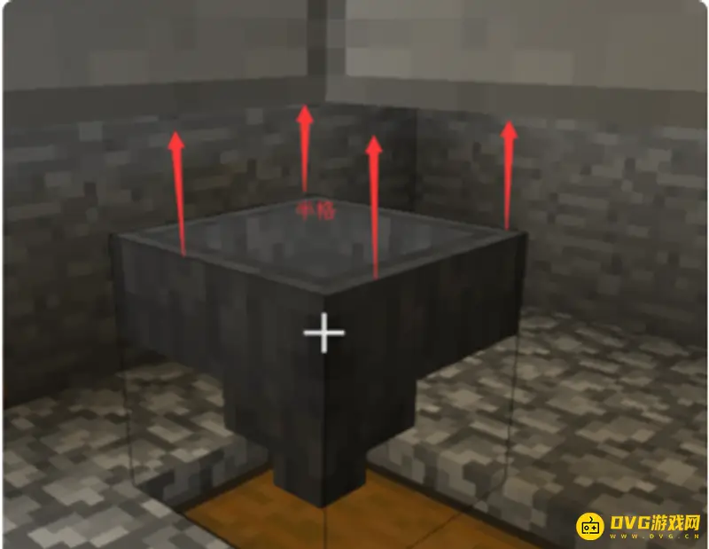 6、距离4个石台阶半格的中心位置放漏斗,漏斗下面放置箱子。