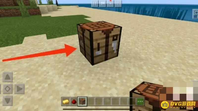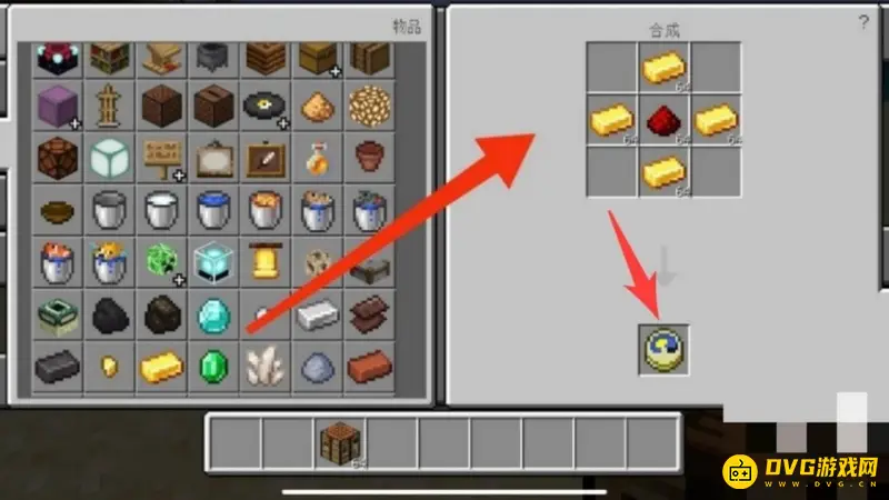3、在工作台界面,将红石放在九宫格中间,4个个金锭分别放置在上下左右位置,自动合成金钟。
